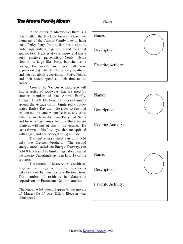 Atoms Family Math Worksheet / Atoms Family Worksheets Teaching Resources Teachers Pay Teachers -. If an atom has 35 protons in the nucleus, how many electrons. Each element is placed in a specific location because of its atomic structure. What type of charge does a proton have? However, those smaller particles don't have the properties of an element. As a group, explain in a grammatically correct sentence why this student is incorrect.